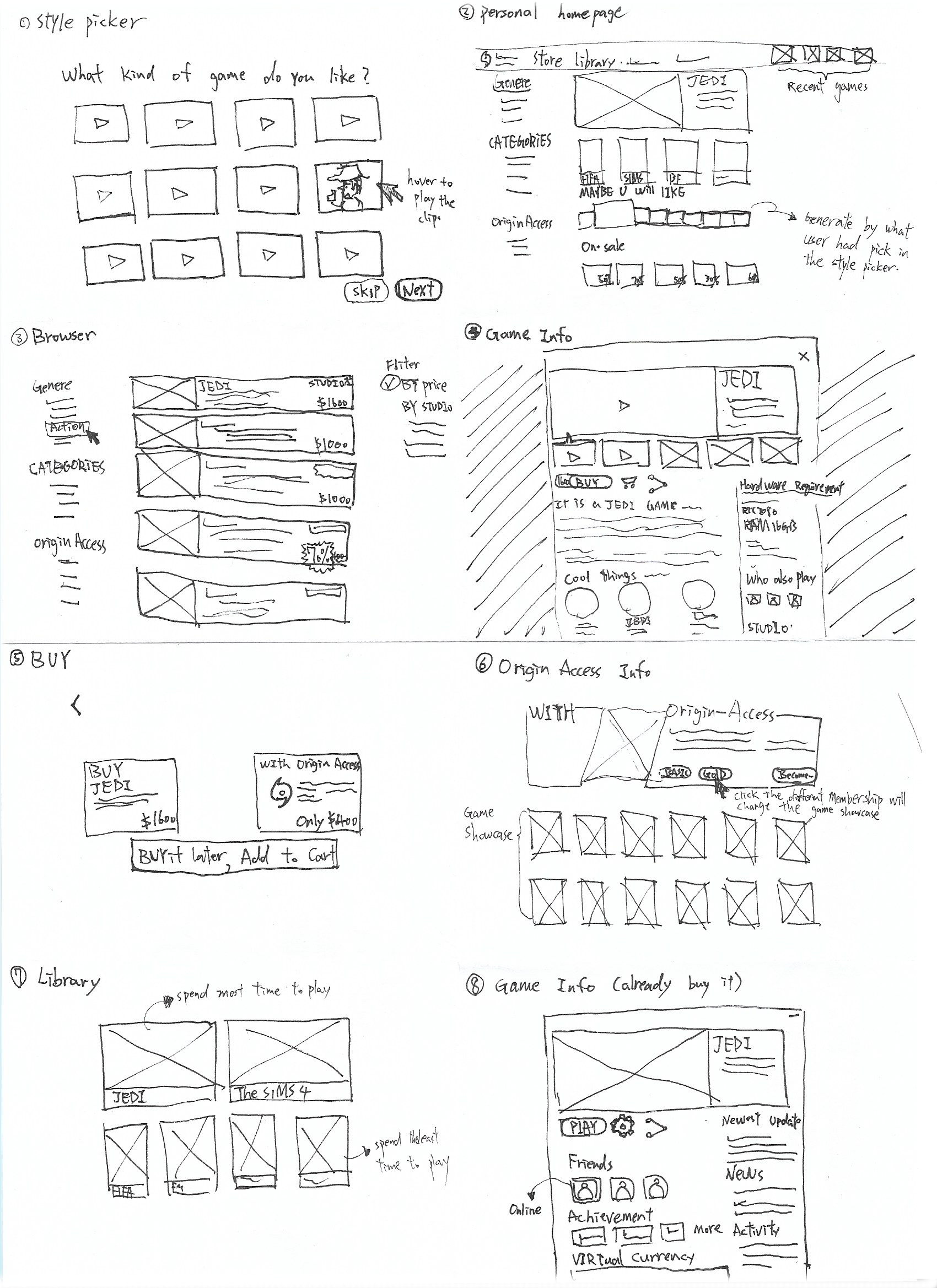 To let the newcomer feels friendly in their first experience. I added a style picker page before they landing on the homepage, to help them find the games or information they want quicker, and also to let the user feels the Origin is caring about what is user’s favorite. Just like every time we open a new game, it will ask us we are a beginner for this kind of game or not.