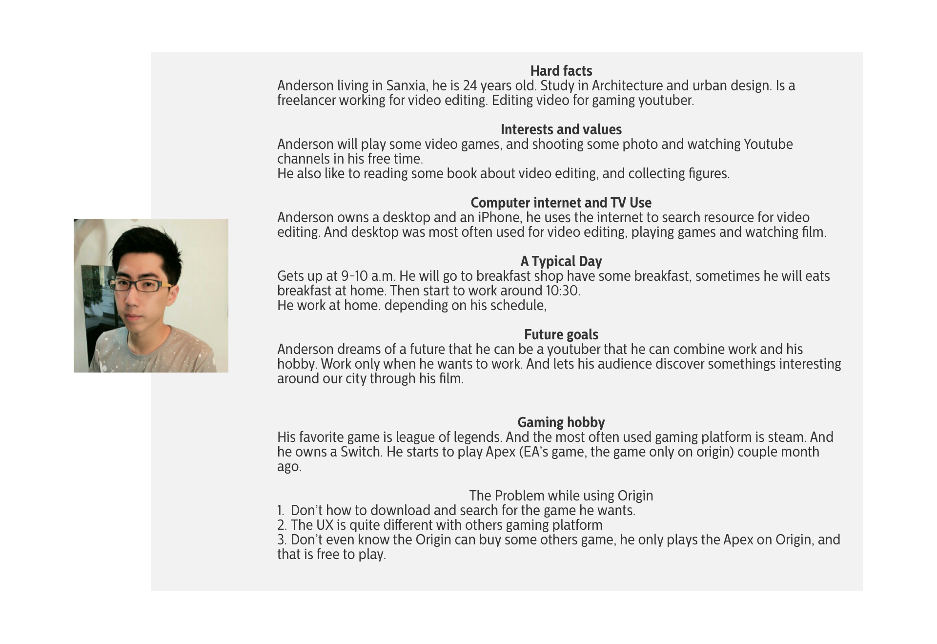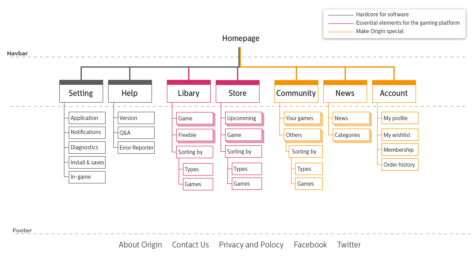 I combined the result of the survey and the strategy from other competitors to shape the structure of the Origin, and figure out what makes Origin special that the user might stay in their platform.