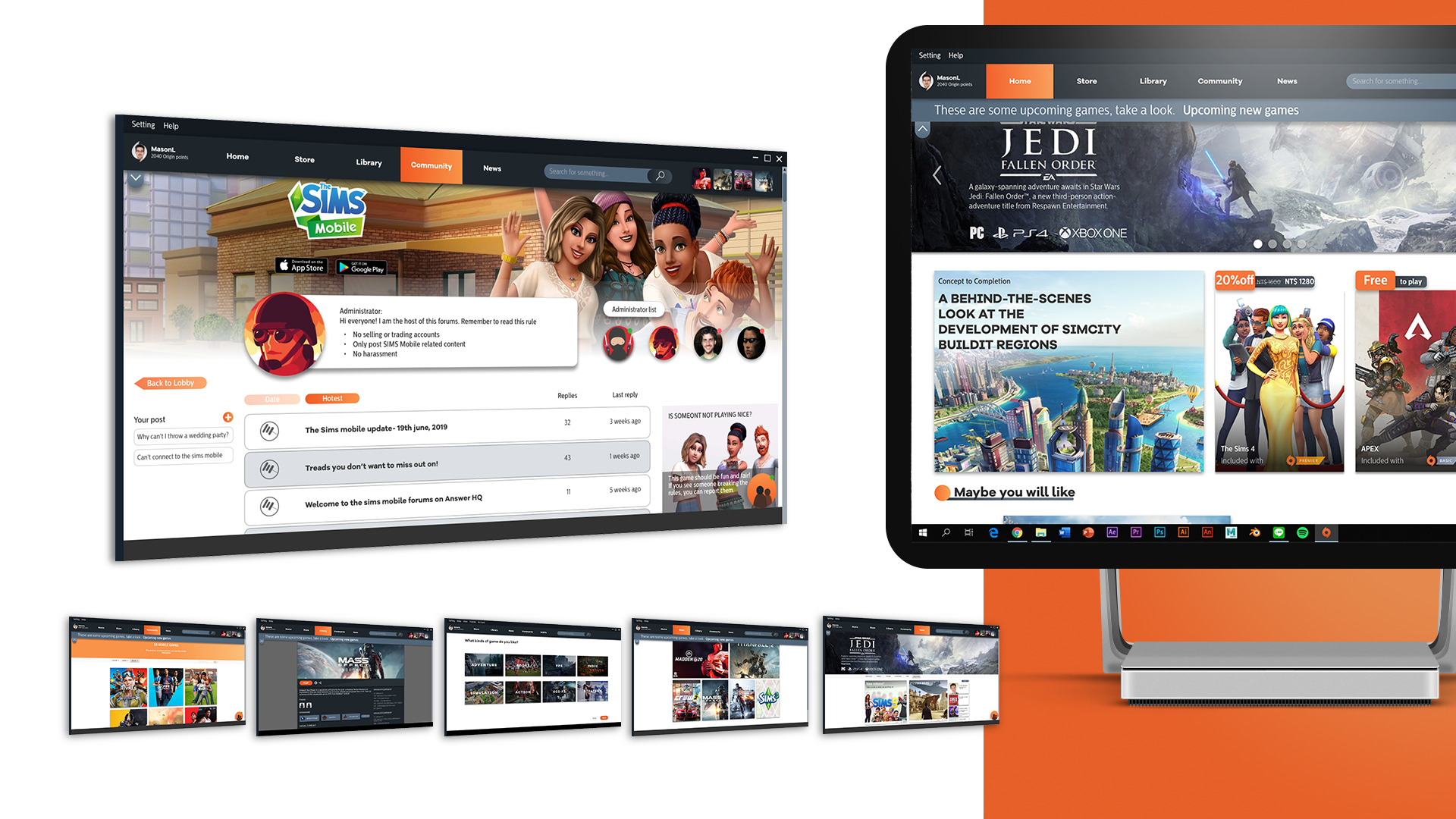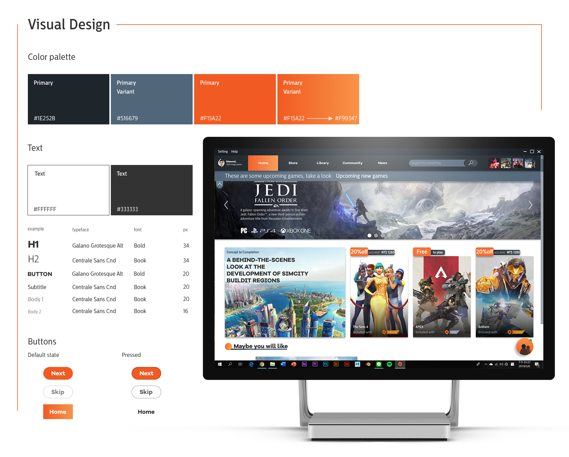 Added the main color of the brand, to get the early image of the platform. Because most of the gaming platforms use the dark-colored, this is one of the reasons that makes Origin different.