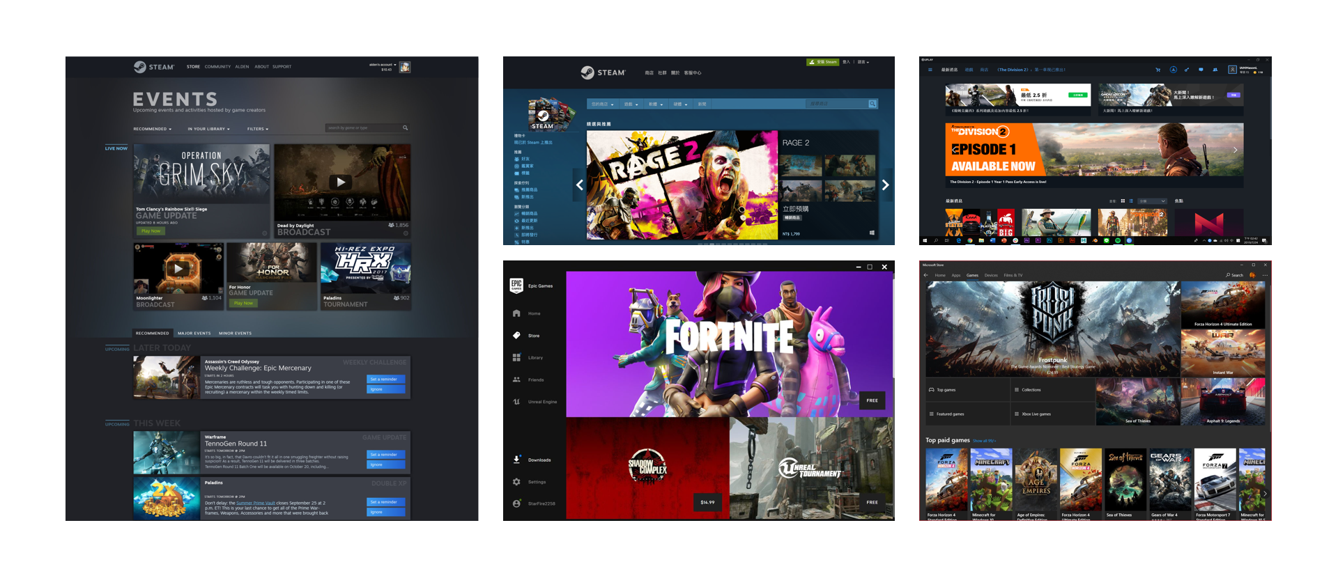 In my survey result, 93% of the participants sorted Steam as the best one, 43% of them sorted Uplay as the second both better than Origin. And analyze the strategy of each platform (Steam, Uplay, Epicgames, Windows store).
